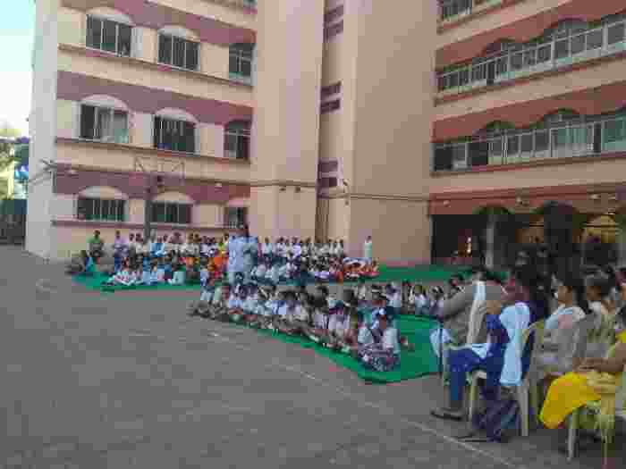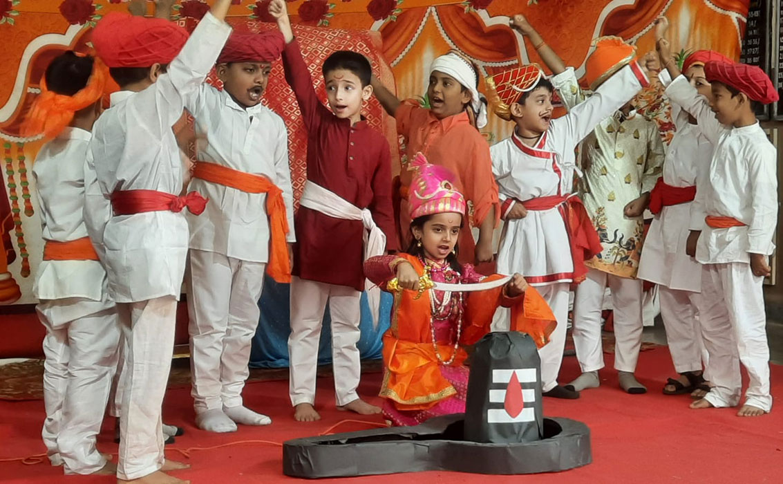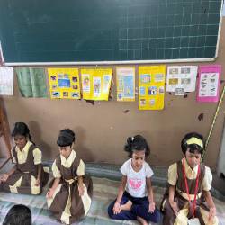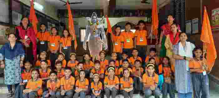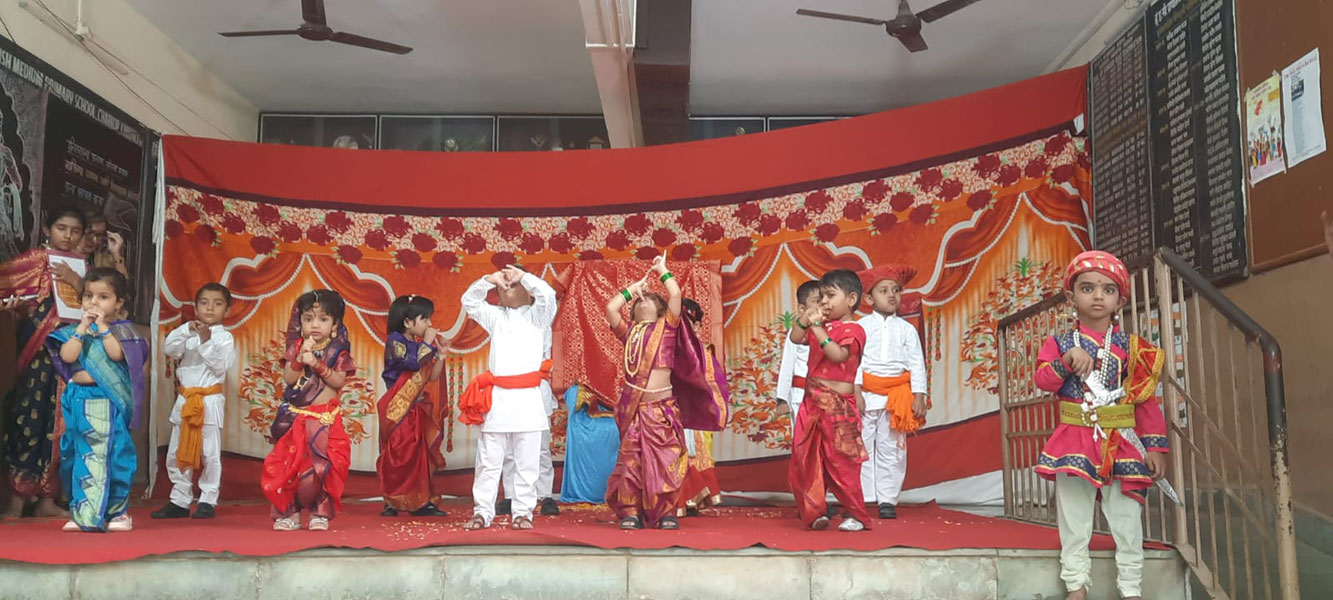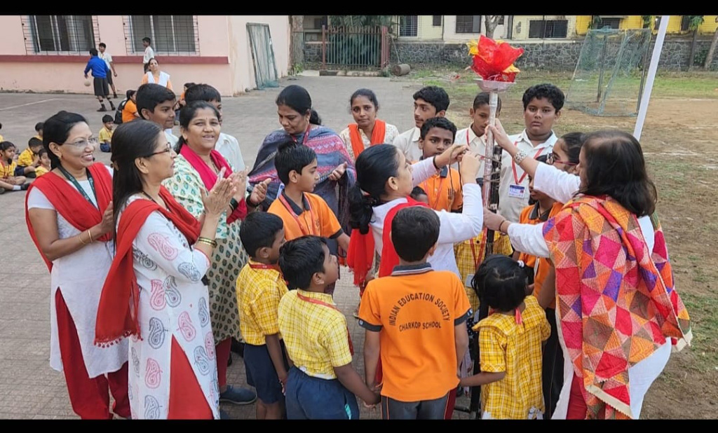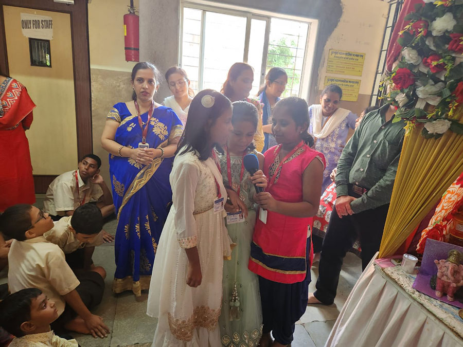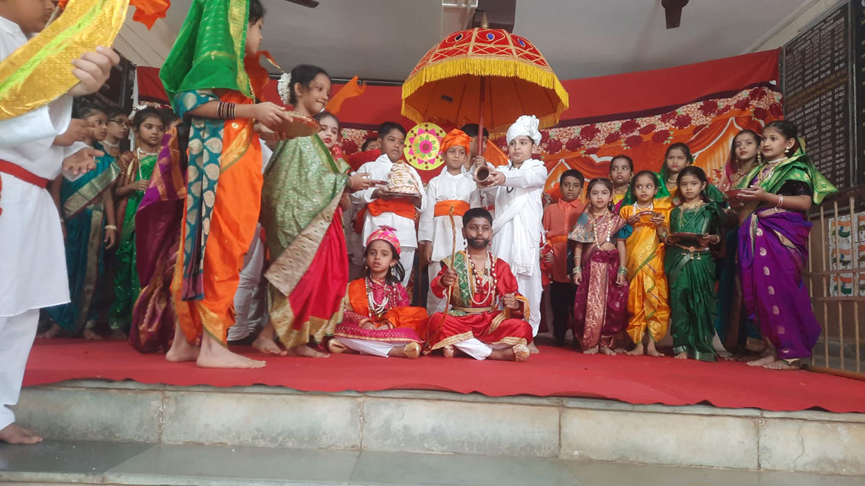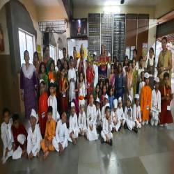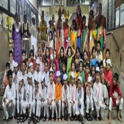 Deep Pooja was celebrated by removing rangoli and lit lamps to mark the beginning of Shravan month. Information was given by teachers. Shlokas were recited.