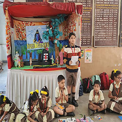 Rakshabandhan was celebrated by tieing rakhis. Project was displayed and information was given by teachers on Rakshabandhan. Coconut barfi was disturbed to children.