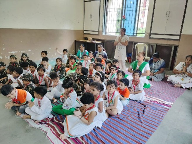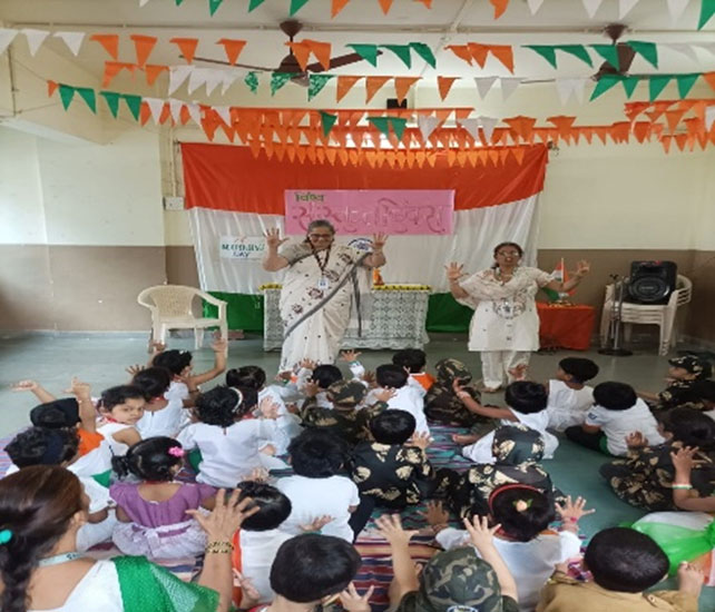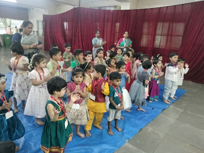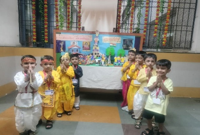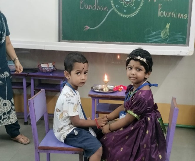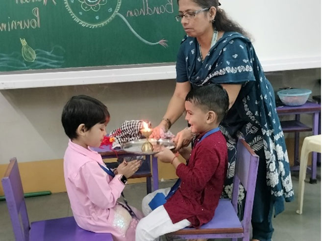 The Raksha Bandhan festival was celebrated with great zeal and endeavor on 08th August 2025. The project on Raksha Bandhan and Narli Poornima was displayed. Through project display, children were made aware of the deepest love and affection between a brother and sister and also the importance of Narli Poornima for the fisherman‘s family. Children in traditional and colourful attires enthusiastically participated in tying the rakhi on the wrist of their classmates.