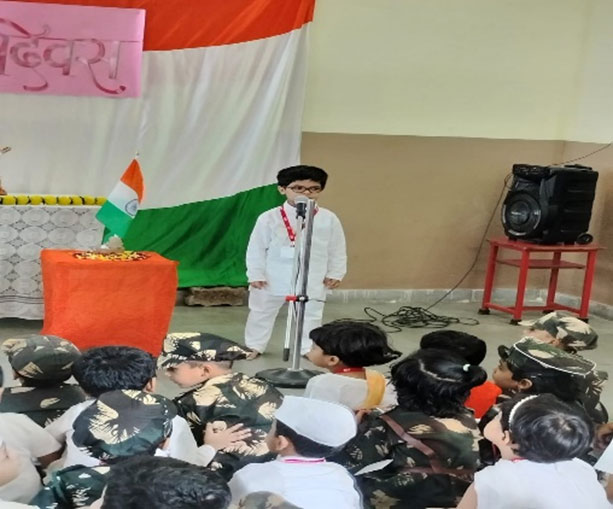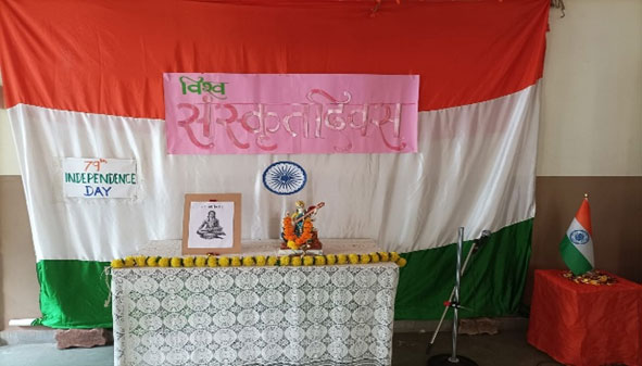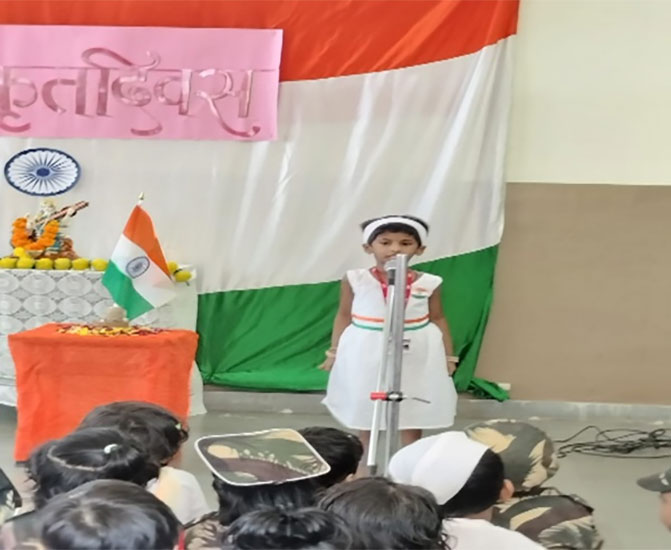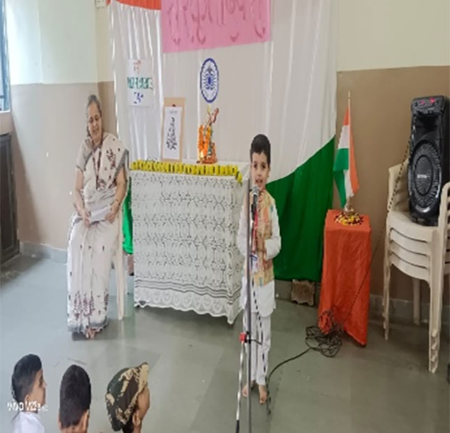 Sanskrit Day was celebrated with great enthusiasm in KG section of our school on 14th August 25. The objective of the program was to introduce the young learners to the beauty of the ancient language and to create an early interest in India’s cultural heritage. The celebration began with the worshiping of saraswati and chanting of simple sanskrit shlokas such as” Ya kundedu tusharhar dhavla”. The little children repeated them with devotion and joy creating a divine atmosphere.