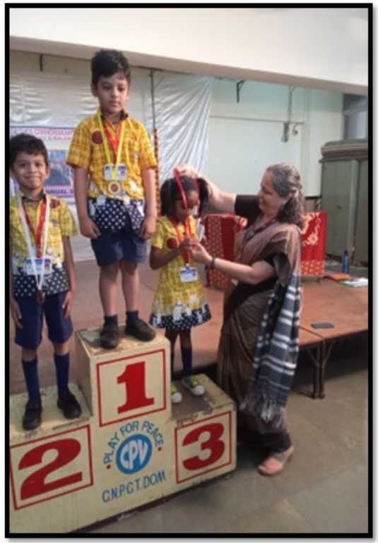 An Annual Sport was conducted on 29.01.2024, for Mini.KG, Jr.KG classes and Motha Shishu and on 30.01.2024, for Sr.KG. classes and Balwarg. Participation in sports day activities like running, leaping, throwing exercises assist children to develop their general physical coordination, agility, gross motor abilities and sportsmanship. On 29th January 2024 the events were running and stringing the beads and 30th January 2024 the events were running and balancing the book. All children enthusiastically participated in the sports and medals were given to the prize winners.