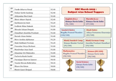Utekar Sarthi Sandeep 92.40 Subject wise School Toppers