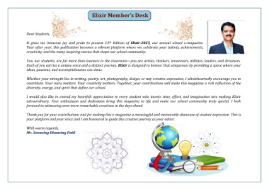 It gives me immense joy and pride to present 13 Edition of Elixir-2025, our annual school e-magazine.