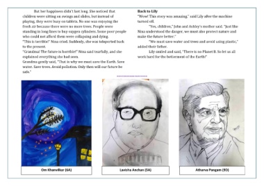 “This is terrible!” Nina cried. Suddenly, she was teleported back “We must save water and trees and avoid using plastic,”