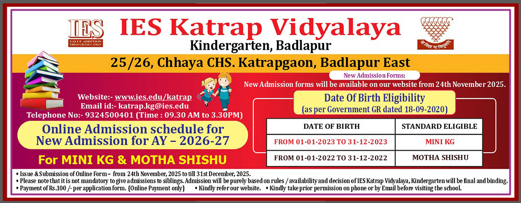 Indian Education Society's Katrap Vidyalaya was established two decades ago with the aim of providing children in Badlapur with Quality education......