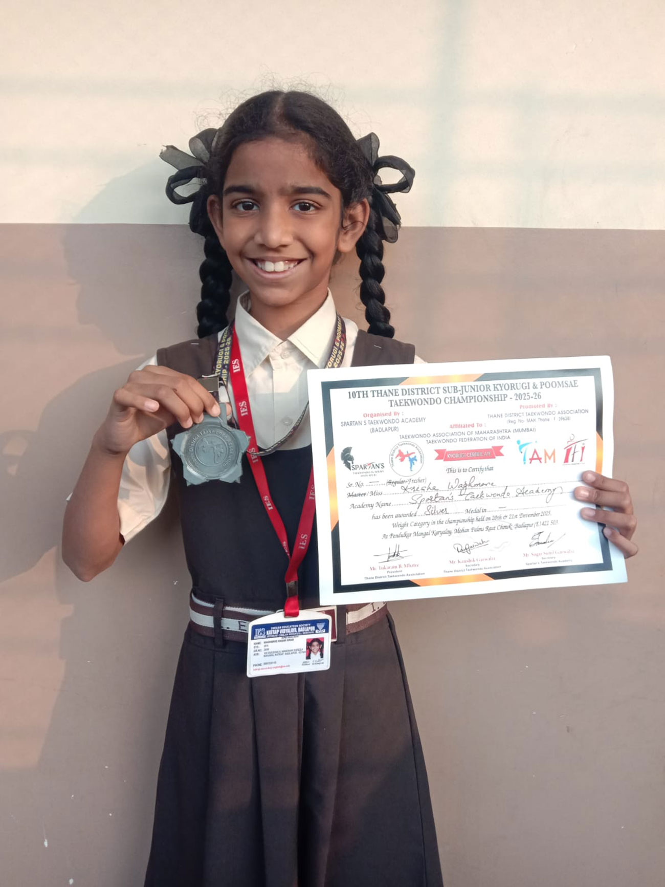 It is a matter of pride to announce that Miss. Swara Bhamare (Std. VI) has secured a Silver Medal in DHBBC 2025–26 for her Action Research Report presented in the Viva Round.