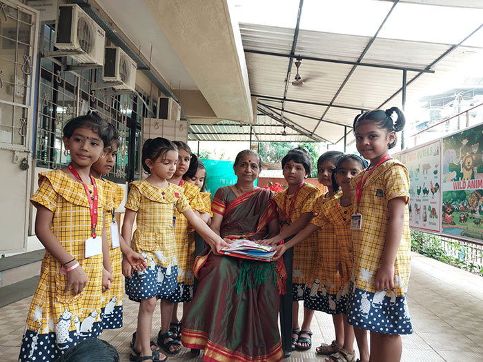A delightful Grandma Storytelling session was organized on 5th August, in the kindergarten. Mrs.Laxmi Ganpatrao Gurav,(Granny of Shakti Gurav Sr B ) narrated a short story from the Ramayana.