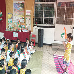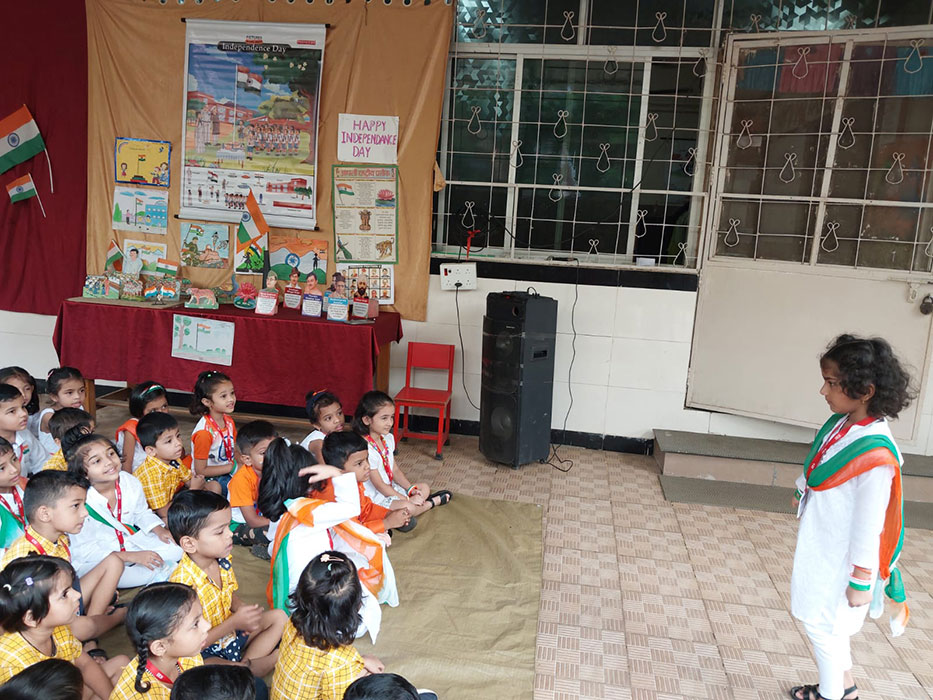 The kindergarten celebrated Independence Day with great enthusiasm and patriotic spirit. The event began with teachers explaining the project displayed , followed by the singing of the national anthem. JR KG kids marched in a parade raising slogans like “Vande Mataram” and “Bharat Mata ki Jai”, filling the atmosphere with patriotic energy . SR KG kids presented patriotic songs, dances, and speeches showcasing their respect for the nation.