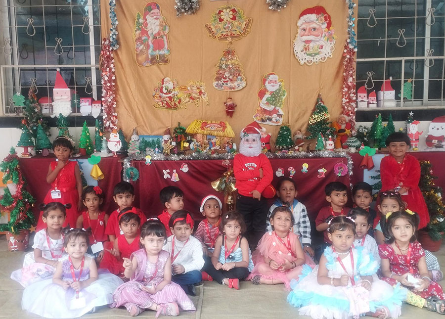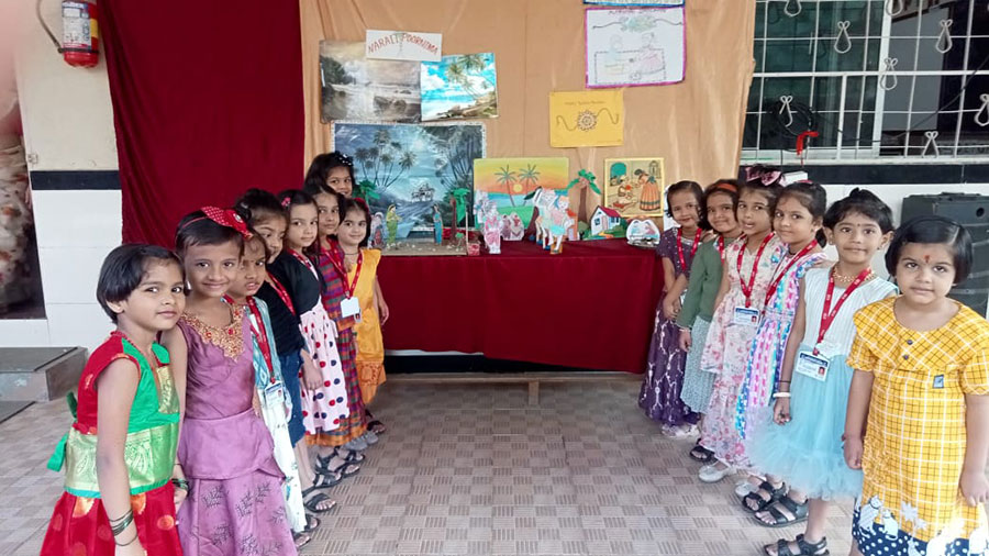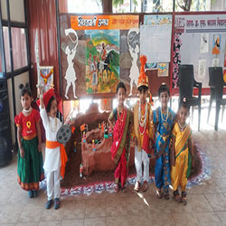 Navratri celebrations began with Ghatasthapana .Teachers explained the importance of the festival. Everyday, children participated in Devi aarti with great devotion. On the last day, they came in traditional dress, offered flowers to Goddess Saraswati, took blessings, and enjoyed garba and dandiya dances with joy.