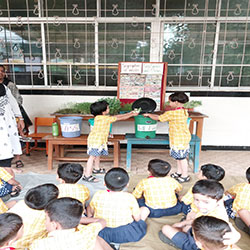 An activity on Dry & Wet waste segregation was conducted to create awareness among students. Through a live demonstration, they learned how to separate dry and wet waste correctly. Teachers explained its importance for recycling, cleanliness, and a healthy environment. Students actively participated and were encouraged to follow the habit at school and home.