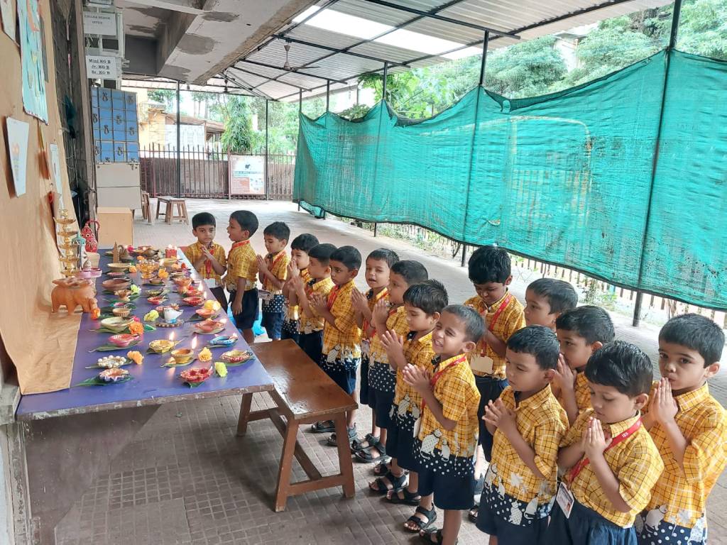 Teachers explained the importance of Diwali, the festival spiritually signifies the victory of light over darkness, knowledge over ignorance, good over evil, and hope over despair. Children performed variety of activities like diya decoration, lantern making and garland preparation.