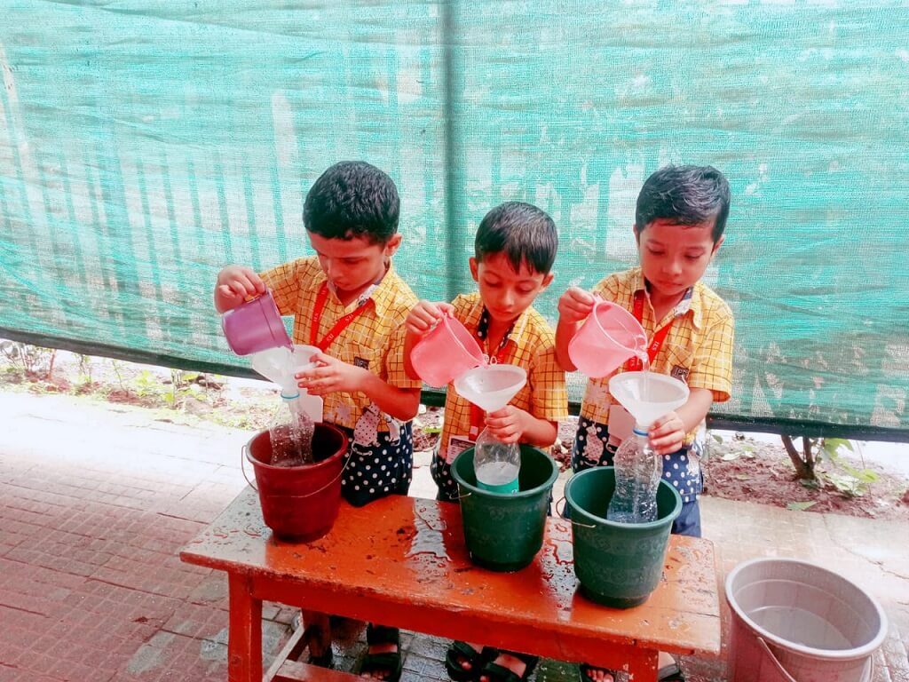 Activities like lifting, pouring Carrying helps to develop muscles in child's hand and enhance their gross motor skills, coordination, concentration.Students had a wonderful time and enjoyed the water play activity.