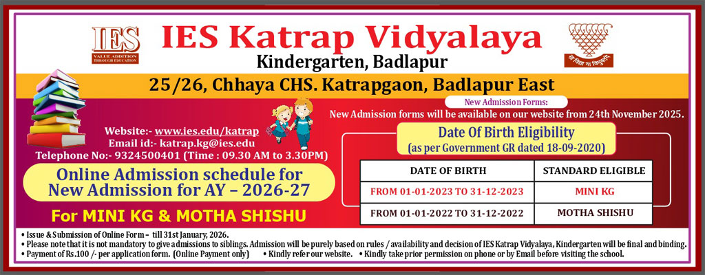Indian Education Society's Katrap Vidyalaya was established two decades ago with the aim of providing children in Badlapur with Quality education......