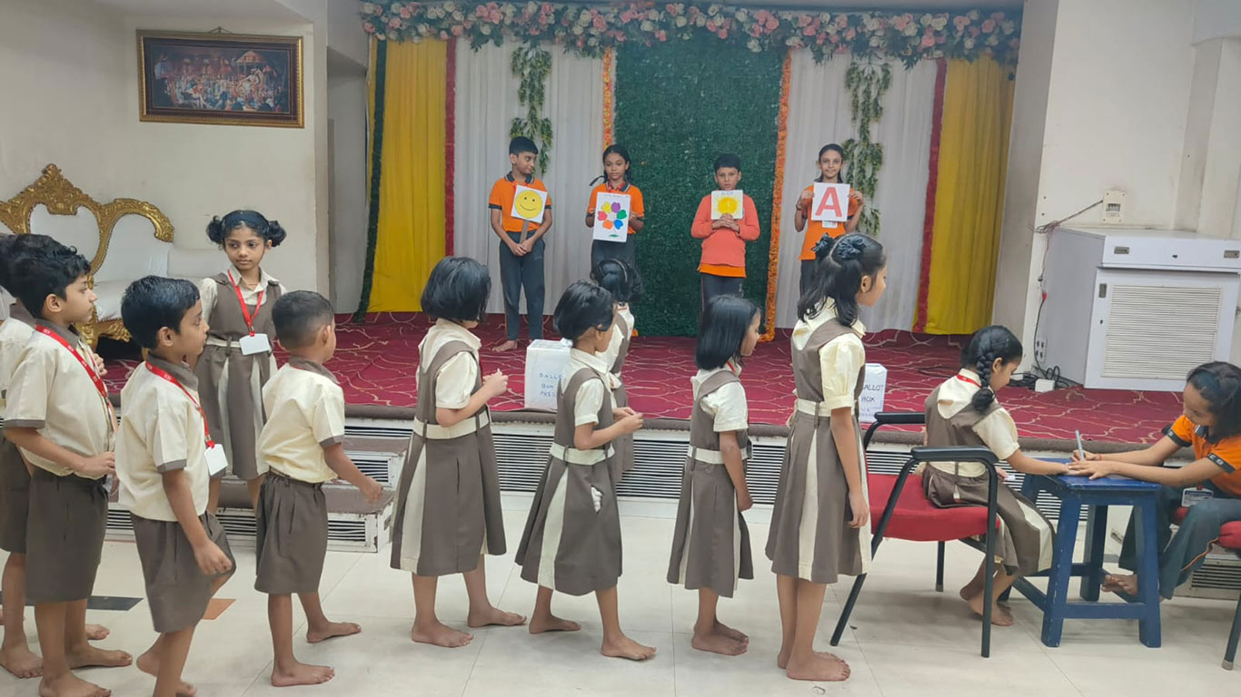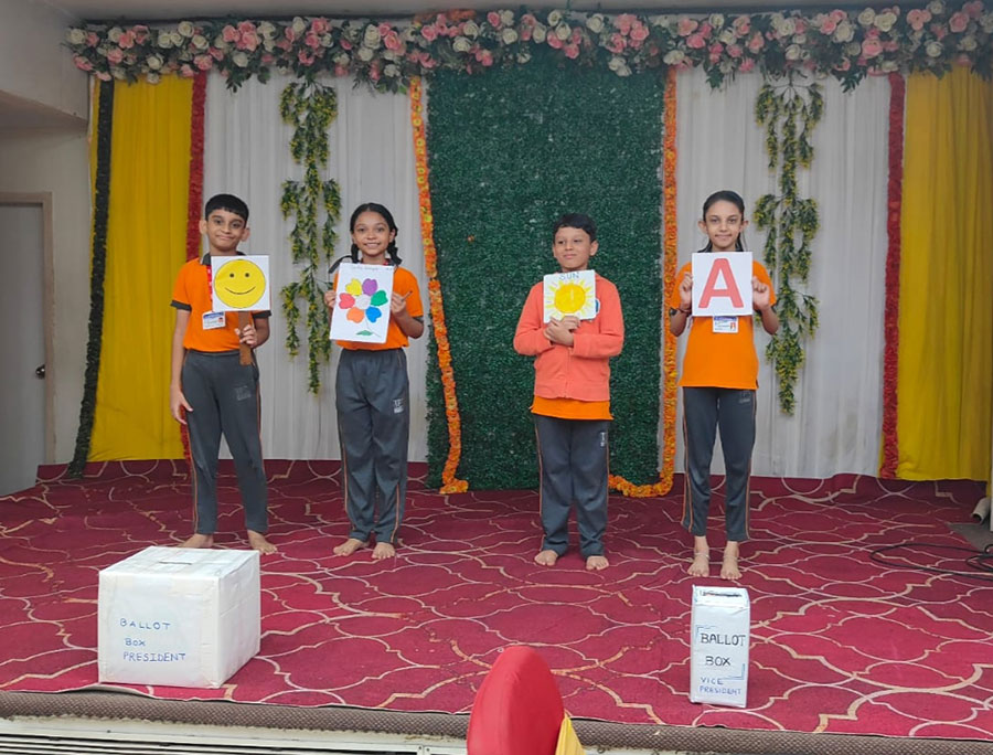 To make the students aware of the importance of election and citizen's rights, an election procedure was organised for students. Std IV students ran the campaign and declared their party symbols and agendas. The election was conducted on 12th September 2025. All the students from Std I to Std IV voted by putting the ballot paper in the ballot box. They were also asked to show their identity Card as proof and their fingers were inked. They all got a real life experience of the Election procedure.