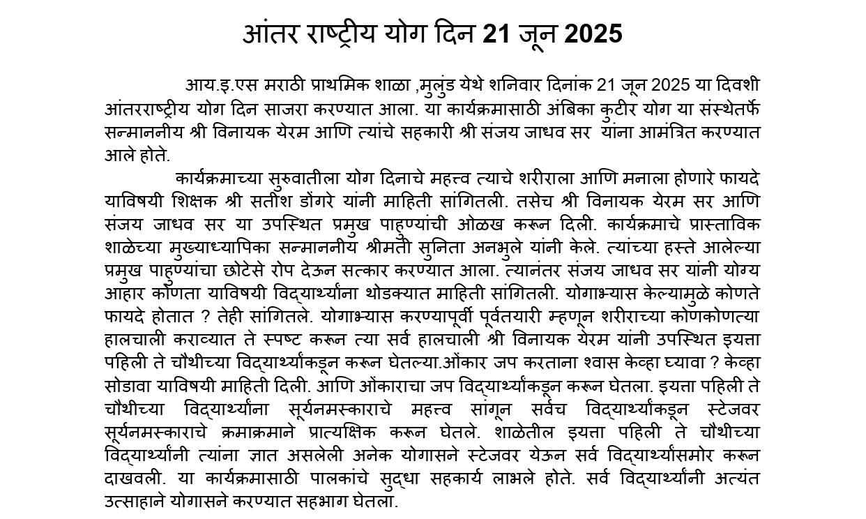 Our school celebrated International Yoga Day with great enthusiasm. Professional yoga trainers were invited to lead students and staff through a series of yoga asanas and meditation sessions. The trainers also explained the significance and benefits of practicing yoga in daily life, helping everyone understand its importance for physical and mental well-being.