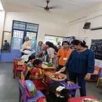 Common tiffin was observed on the same day. Children brought boiled potatoes in the tiffin. Root vegetables were explained to them. Teachers explained the tiny tots regarding their colours, taste & their usage. Children enjoyed the common tiffin.