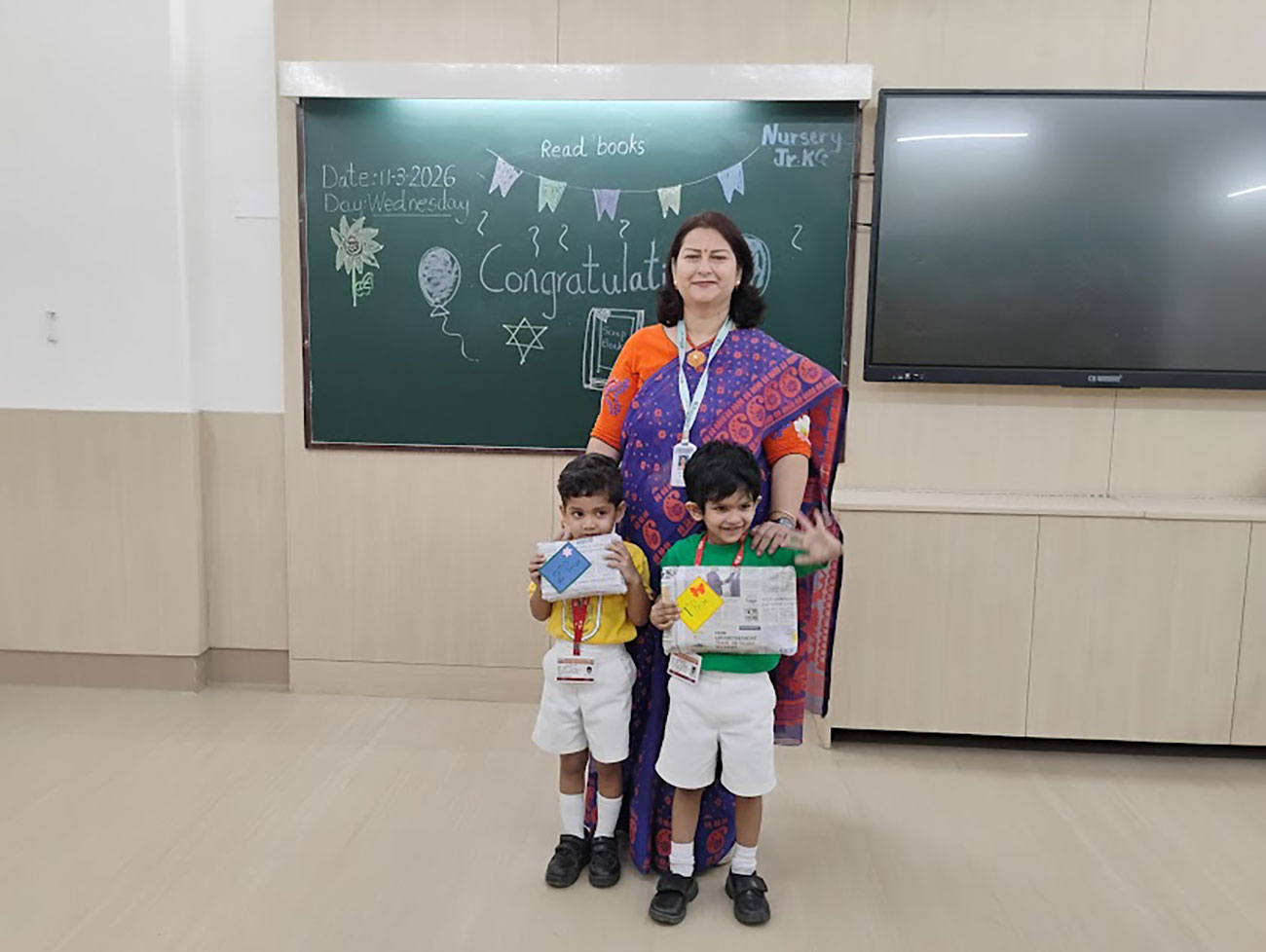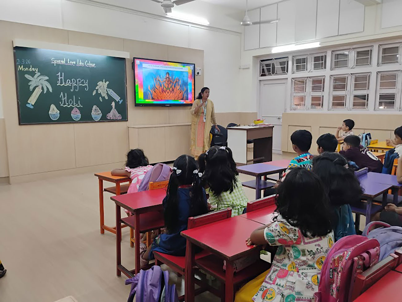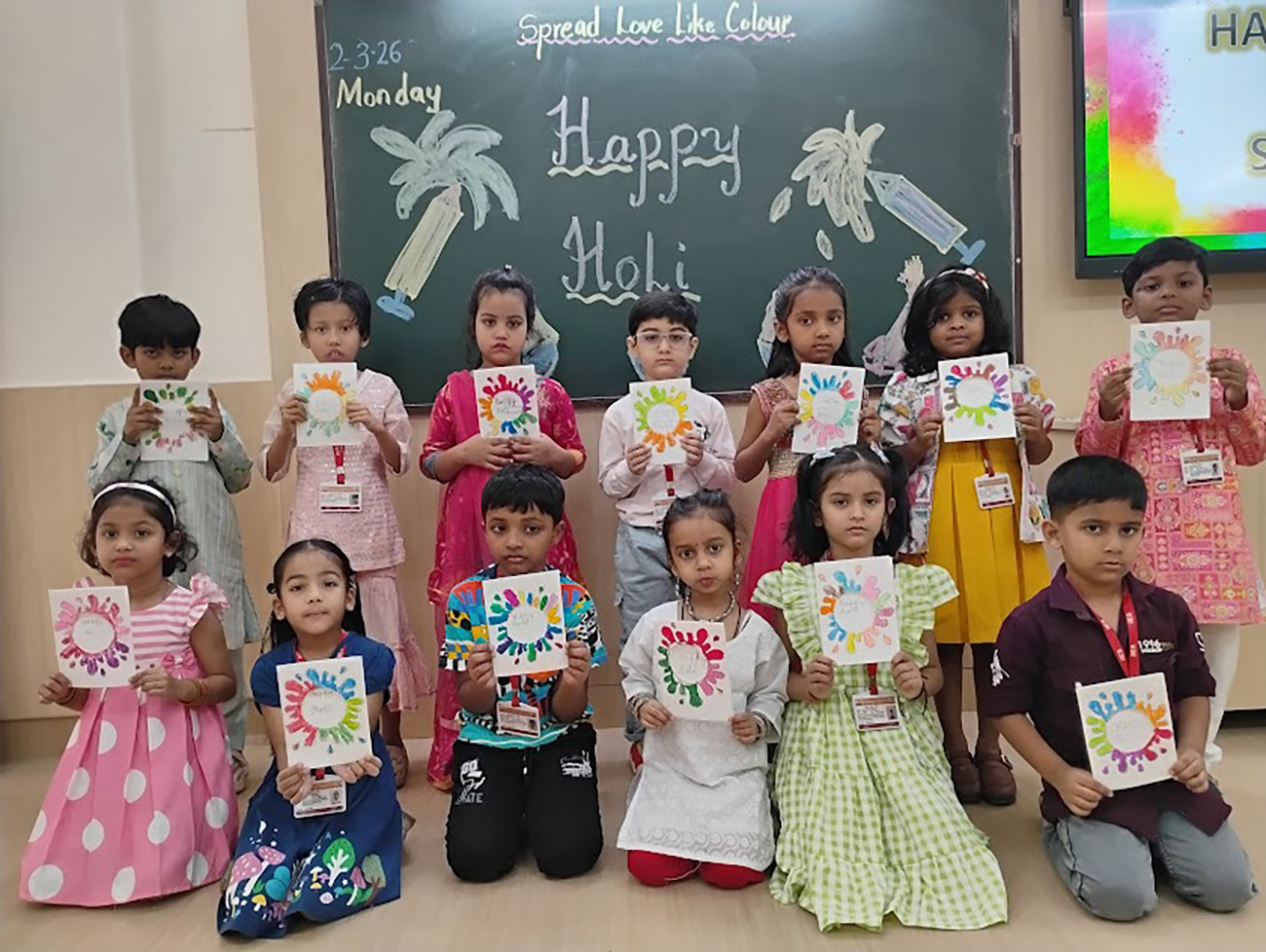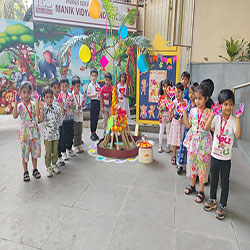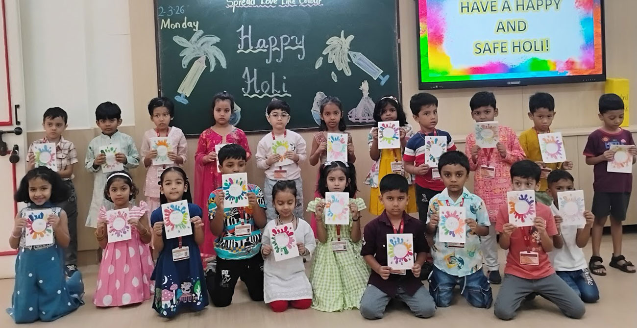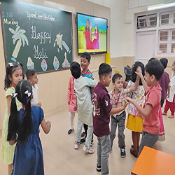 Holi was celebrated with great joy and enthusiasm in our class. A beautiful model depicting the Holika Dahan was displayed, while teachers shared the significance of the festival through engaging stories. The students created colourful art, and enjoyed singing and dancing to festive songs, making it a fun and memorable day.