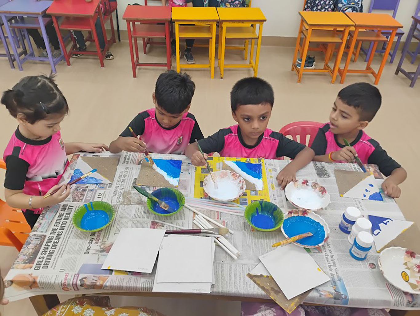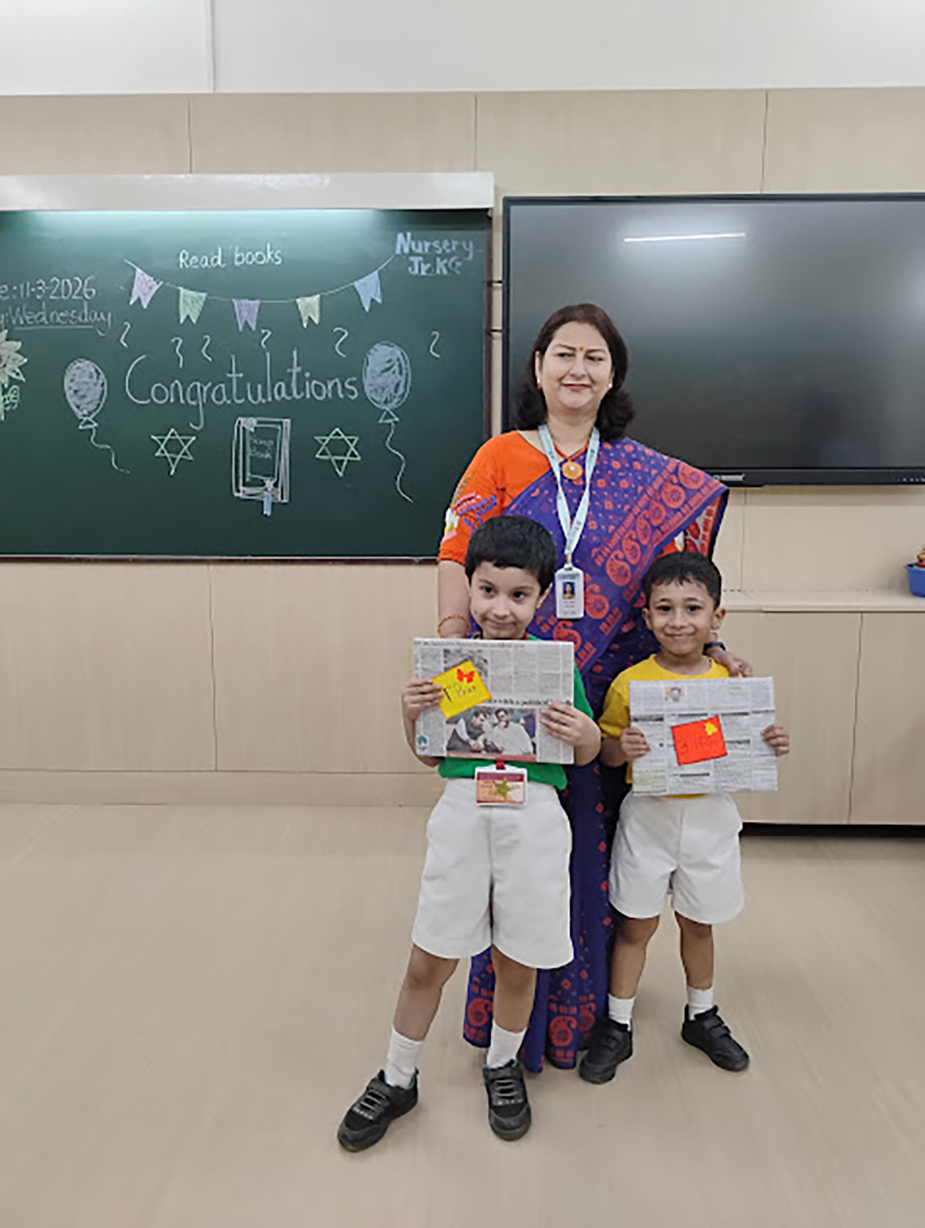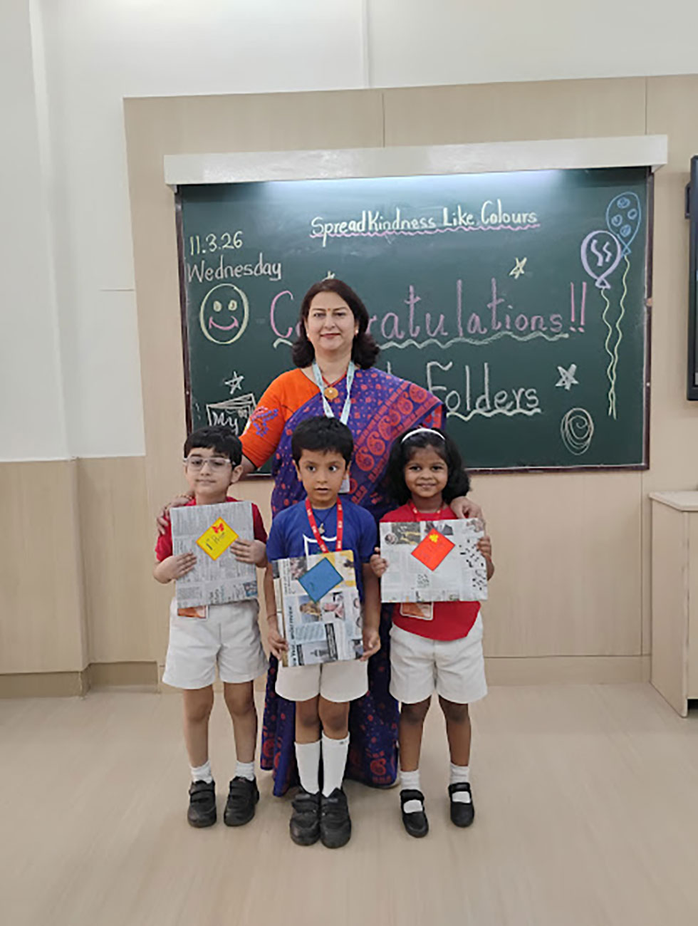 Holi was celebrated with great joy and enthusiasm in our class. A beautiful model depicting the Holika Dahan was displayed, while teachers shared the significance of the festival through engaging stories. The students created colourful art, and enjoyed singing and dancing to festive songs, making it a fun and memorable day.
