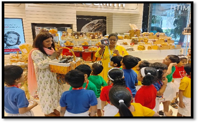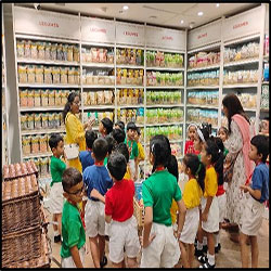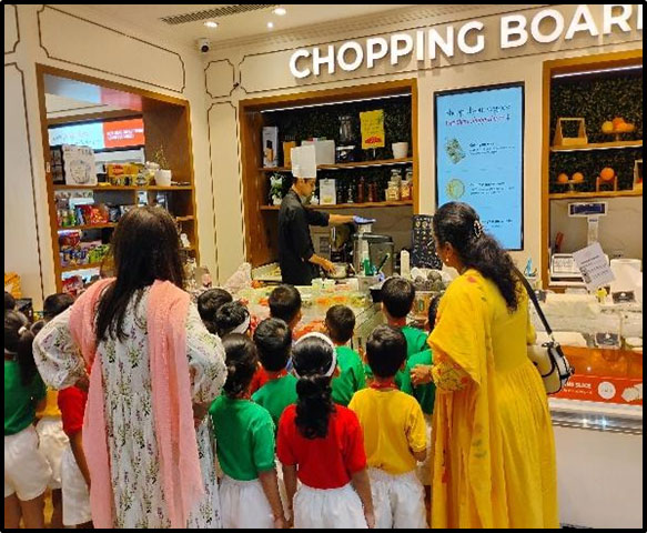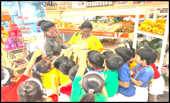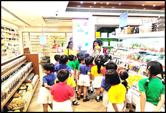 The Senior KG students went on a field trip to Food Square Mall as part of their learning on the topic. They explored various sections displaying fruits, vegetables, dairy, meat, and other food items, which enhanced their understanding and general knowledge. The children thoroughly enjoyed the trip with their peers and teachers.