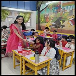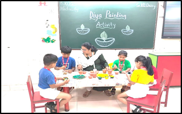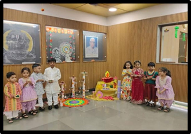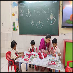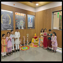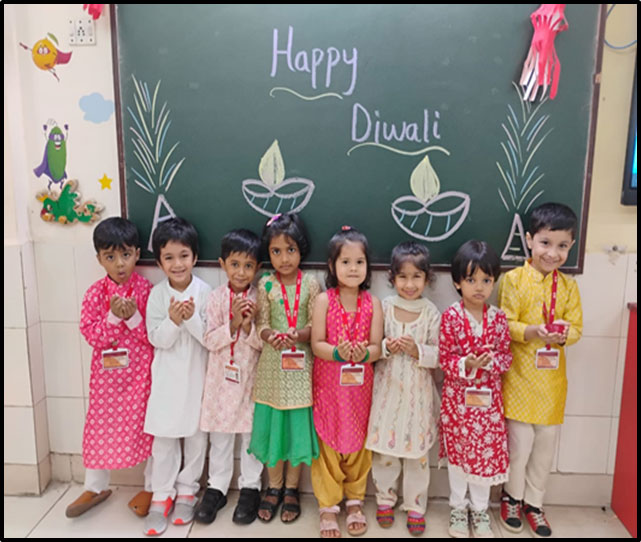 Our little ones celebrated Diwali, the festival of lights, with joy and excitement! They painted and decorated colorful diyas, learning the value of sharing and spreading happiness. Teachers encouraged them to celebrate a green, noise-free, and pollution-free Diwali, filling the day with light, laughter, and love.