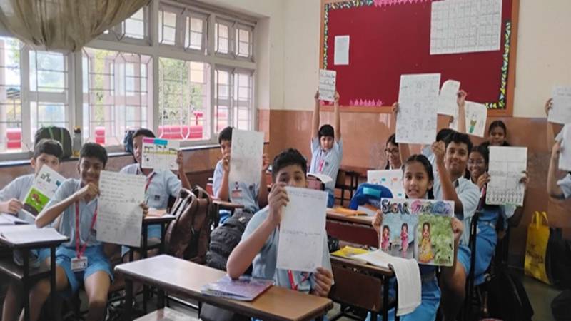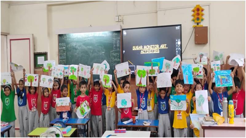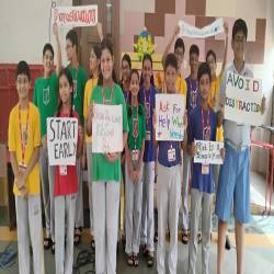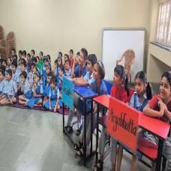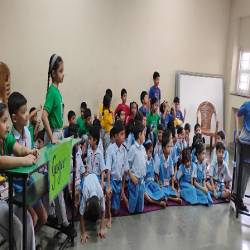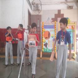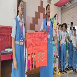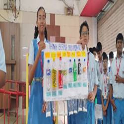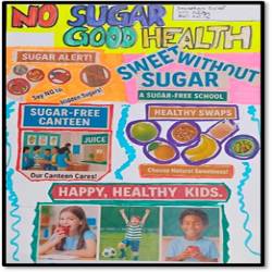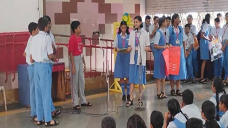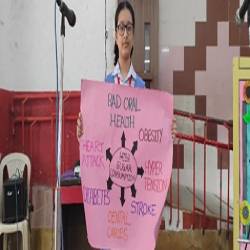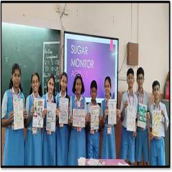 An assembly was conducted by Std IX, which focused on the harmful effects of high sugar intake, especially for children. It was followed by a street play performed by the students, showing how sugary foods can lead to health problems like obesity and heart risks.