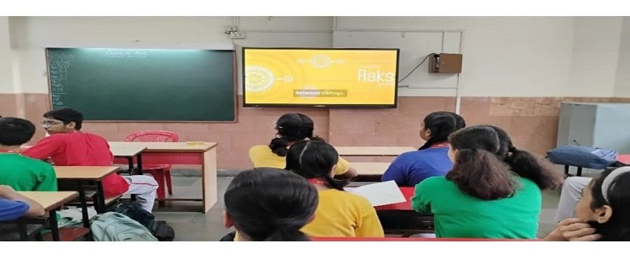 The festival of Raksha Bandhan celebrates the bond between brothers and sisters, emphasising love, duty and respect. To show the values of love, care and protection, a video on Raksha Bandhan was show to all the students from Std 6 to 10.