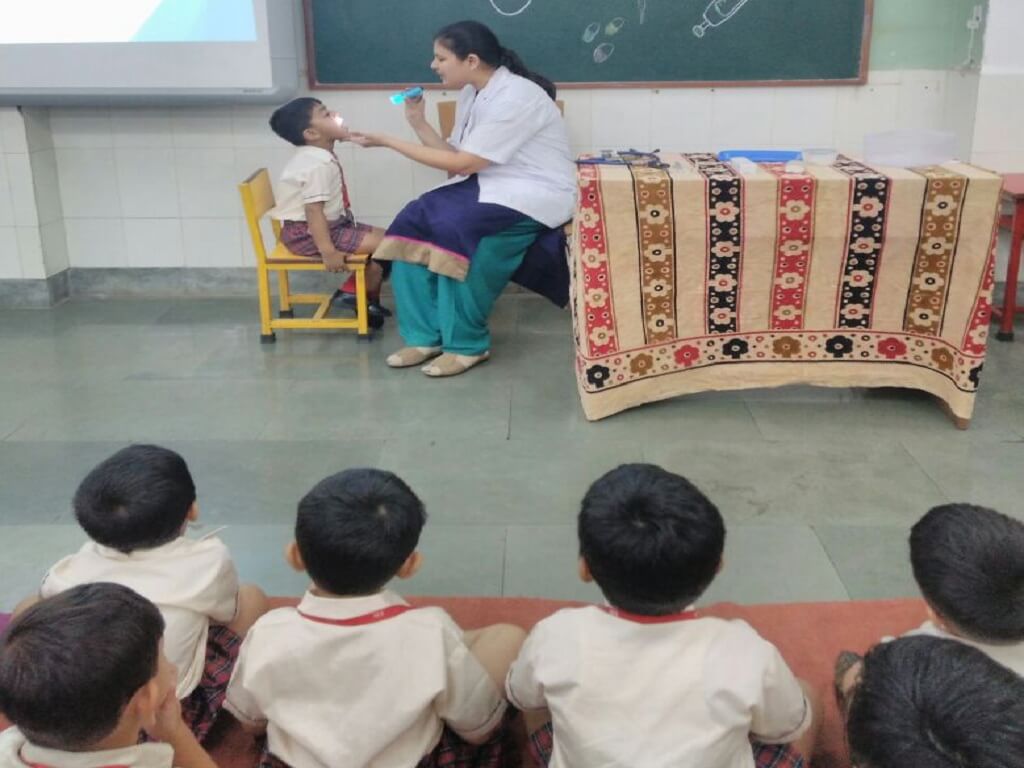 A Dental Check-up was conducted for the students of Std. I to VIII. Students were checked for their dental wellness and hygiene. A report was given to every student, with guidelines for attention by parents to conditions which needed immediate attention, with regards to the dental health. Some students proudly flashed their dental card which said “Good Oral Hygiene / Health”.