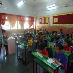 This was followed by the chanting of the OMKAR, all students chanting in unison creating an atmosphere of calmness and tranquillity for the students, the need of the hour, to calm our students and attune them to a day of learning.