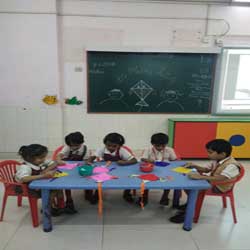 Project on Mumbai. (Sr.KG)Jr KG prepared project on the topic Railways & Waterways and Sr. KG on Mumbai. Children brought models, coloured papers , beads , craft papers , glue , empty match boxes ,small card board boxes and other materials to assemble and make a Project. Children prepared their project with great observation, skill and keenness. They spoke a few sentences describing their project.