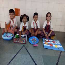 Children brought models and materials like ice-cream sticks, marble, paper, cut outs of different pictures, sand, match boxes, glue to assemble and make their project. They spoke confidently about the same.