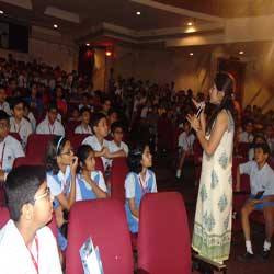 A health talk was organized in the school auditorium by Yakult Danone India Pvt. Ltd a company that manufactures and sells Yakult, a probiotic health drink in India.