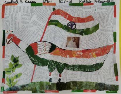 The circular for Collage making competition was uploadedon 14th July, 2021 in Google Classroom. The competition was conducted through Google Classroom. The date for uploading the Collage work was 7th August, 2021. The competition was held for Std. 1, 2 & 3. Theme for competition was 15th August.