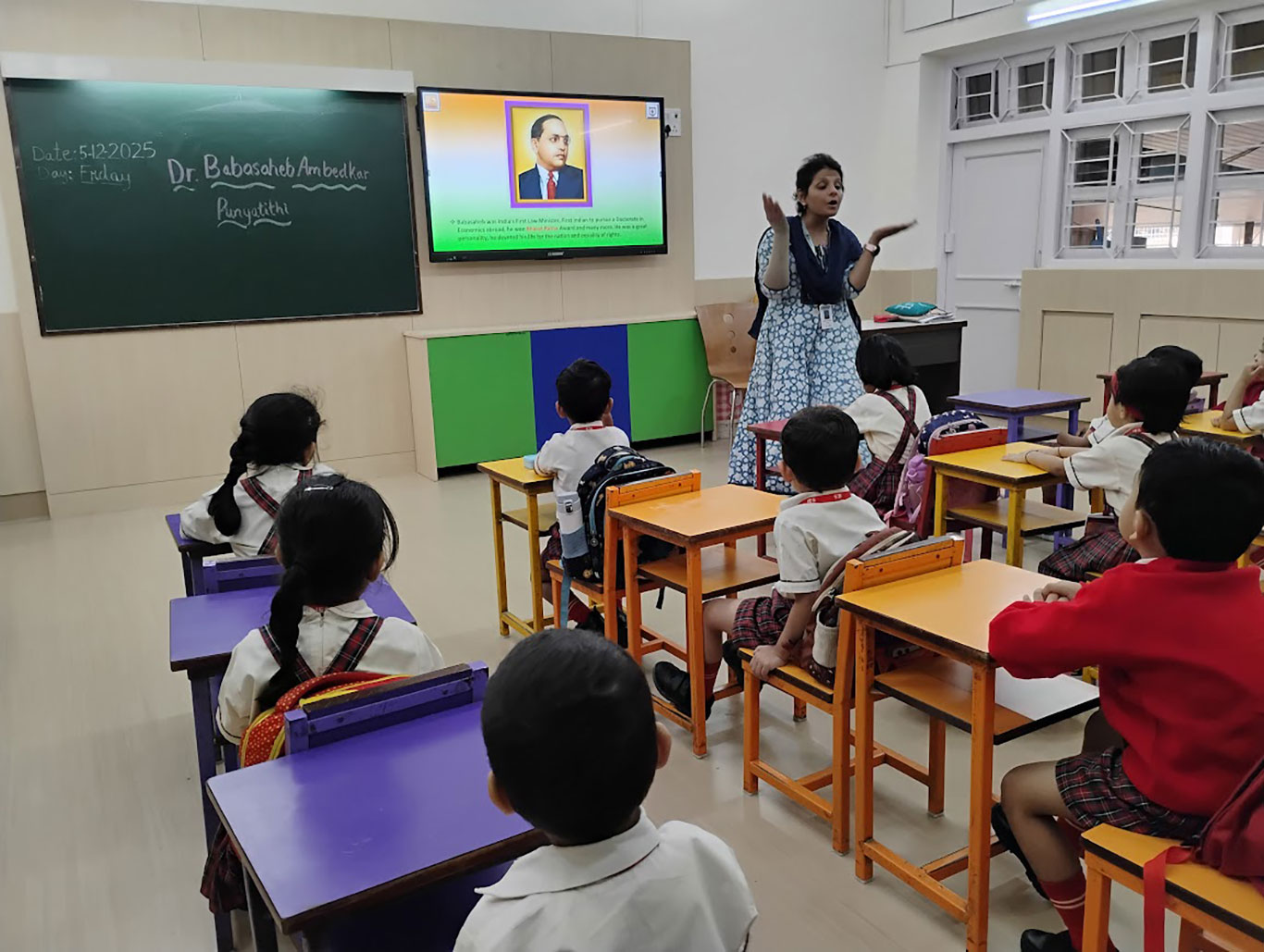 Dr. Babasaheb Ambedkar Punyatithi was observed to commemorate the death anniversary of Dr. B. R. Ambedkar, the chief architect of the Indian Constitution. The occasion served as a reminder of his lifelong fight for equality and justice. Teachers explained his contributions through a PowerPoint presentation, and students also spoke to honor the great leader.