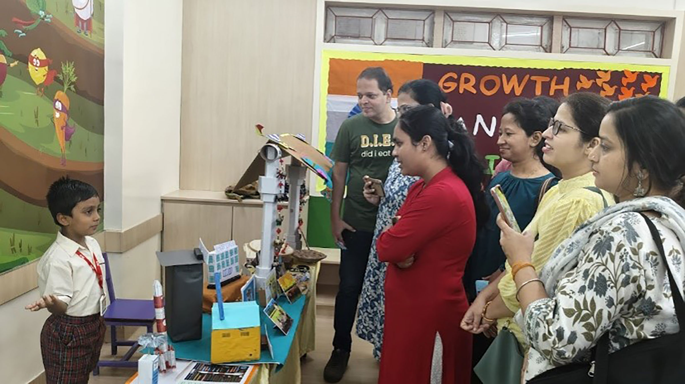 The Annual Exhibition ‘Vibrance’ was organized on the theme “India’s Journey Towards Progress.” Through creative models and charts, children confidently explained different stages of India’s development. Interactive activity corners such as Natural Dyes, Henna block printing, and Warli Art engaged the children. An artistic photo booth depicting city and village life, along with fun games, added to the excitement. The exhibition was enjoyed by all and proved to be a meaningful learning experience.