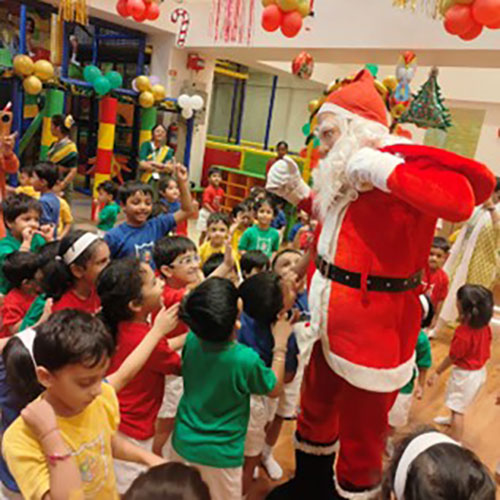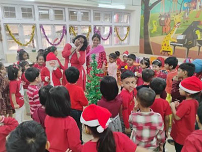 A Christmas celebration was organized for our children, and they came dressed in colorful party attire. The teachers explained the story of Christmas through a crib display and a PowerPoint presentation. The children actively participated in fun games and enjoyed dancing to cheerful party songs. The celebration was filled with joy, excitement, and festive cheer, creating happy memories for all.