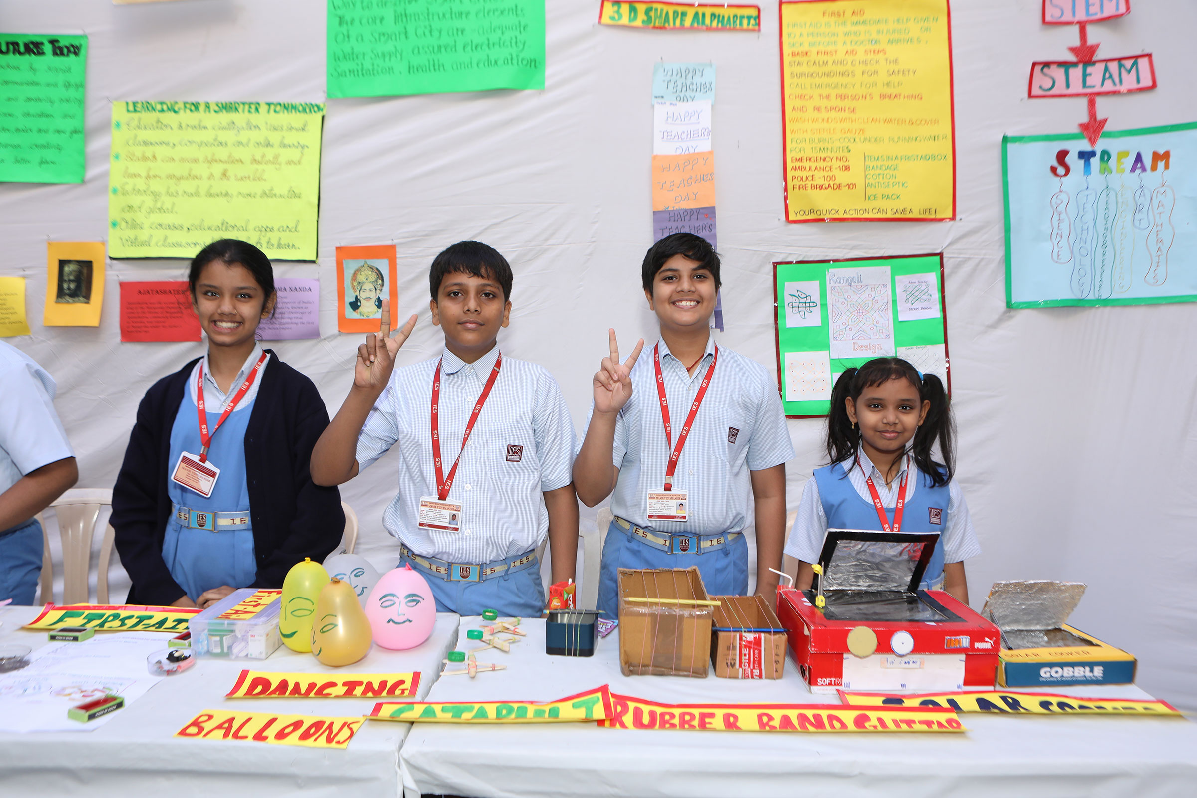 The Annual Exhibition was held on 20th February 2025 on the theme “A Journey Through Time.” It was organised in the Stilt Area, Quadrangle, Examination Room, and the Canteen Area. The event was inaugurated by the Chief Guest, Shri Chandawarkar, Director of IES Architecture. The exhibition was conducted in two sessions for the Secondary and Primary sections. Students displayed creative charts, games, and models, showcasing their knowledge and imagination.