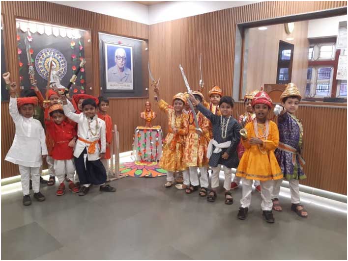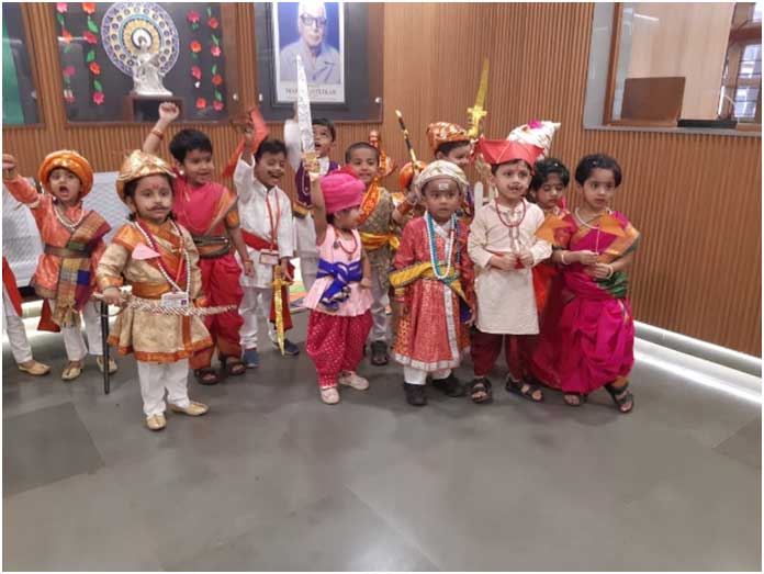 Shivjayanti, the birth anniversary of the first Chhatrapati and founder of the Maratha Empire, Shivaji, is celebrated on 19th February every year in the state of Maharashtra as well as worldwide by Marathi people. Our tiny tots from the Kindergarten, celebrated Shiv Jayanti by listening to stories and watching videos of this great Maratha Warrior. A fancy dress activity was conducted wherein the children of Nursery, Jr. KG and Sr. KG came dressed as Shivaji Maharaj, Jijabai, Tanaji Malusare and also as mavlas. They spoke few sentences about this great Maratha warrior and his ideals for Hindavi Swarajya. Children felt drawn towards their heritage and the culture of the Glorious Maratha Empire.