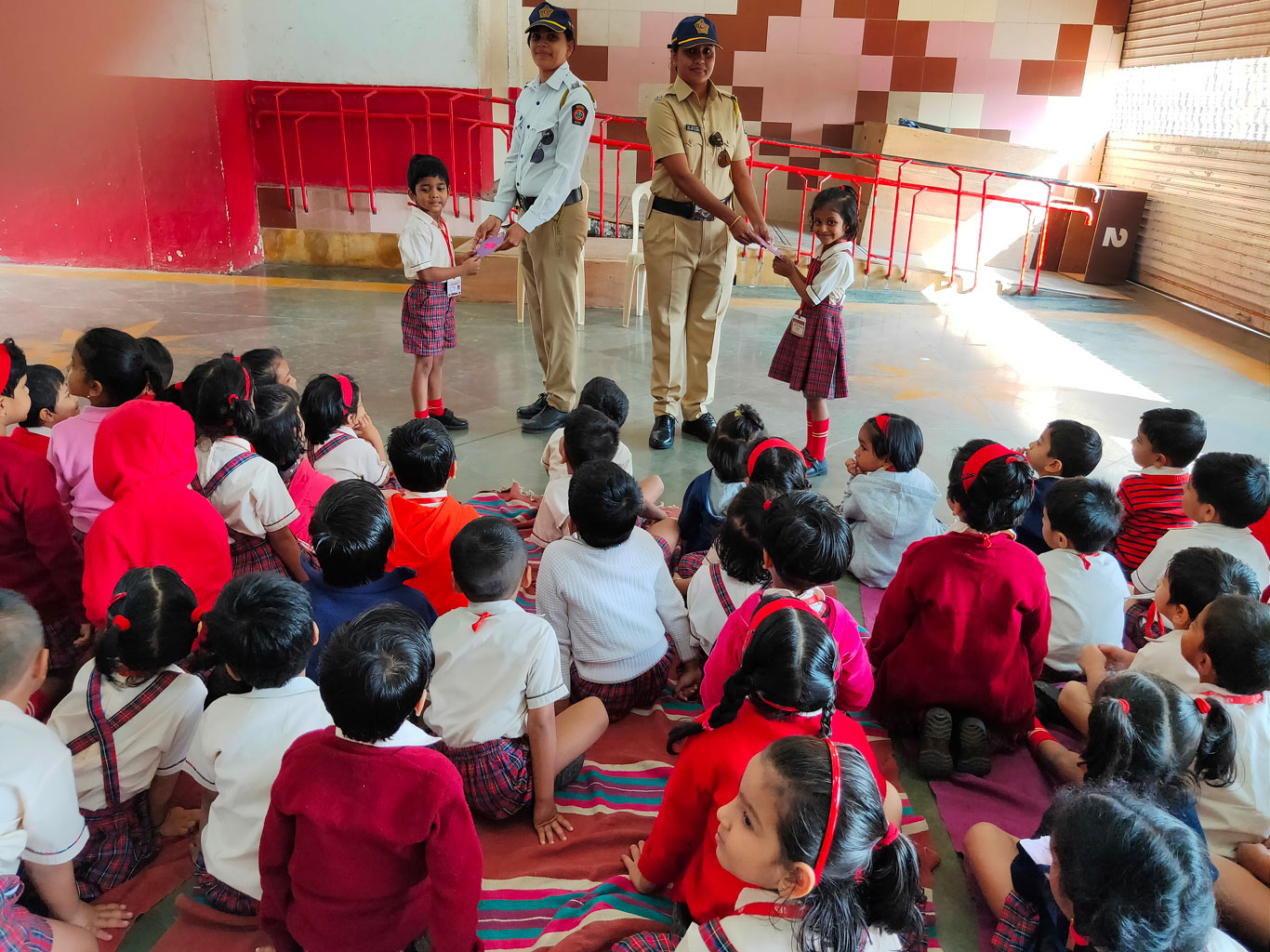 No job is big or small and each one, through their quality of work and expertise contribute to the society, that’s what community living is all about. To familiarize children with various helpers in the society and to appreciate the work done by them a ‘Thanksgiving Week’ was organized in the Pre-primary section. Community helpers like traffic personnels, doctor, carpenter, postman and courier person were invited to the school, to interact with the children. The traffic policewoman and civil police woman came smartly dressed in their uniforms and gave practical knowledge to the children. The doctor showed a PowerPoint Presentation and shared with the little ones how we should develop clean and healthy habits. The courier person and postman spent their valuable time with children and enlightened them with different postal businesses such as letters, registered post, postcards, stamps etc. The children were curious to see the different tools of the carpenter and were able to relate to what they had learnt in class. They expressed their gratitude by presenting each one of them with a ‘Thank You card.’