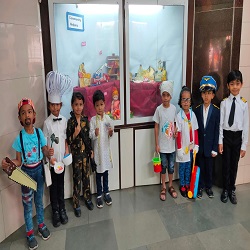 As a culmination to the topic on ‘Our Helpers,’ a fancy dress activity was conducted in the Pre primary section. The children dressed up as different community helpers like fireman, doctor, teacher, milkman, painter etc. They spoke eloquently about their jobs, thus helping them build their vocabulary as well as confidence. They looked attractive in different roles and felt proud about themselves.
