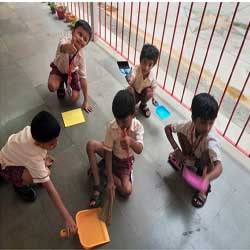 To imbibe in children, the habit of keeping their surroundings clean., the little ones were taught how important cleanliness and how we can add a sense of belonging to our school by keeping it clean. A special activity was conducted for this. Children were eagerly waiting for this activity. They cleanedand giggled and displayed an excellent sense of duty towards their school, homes and their nation.