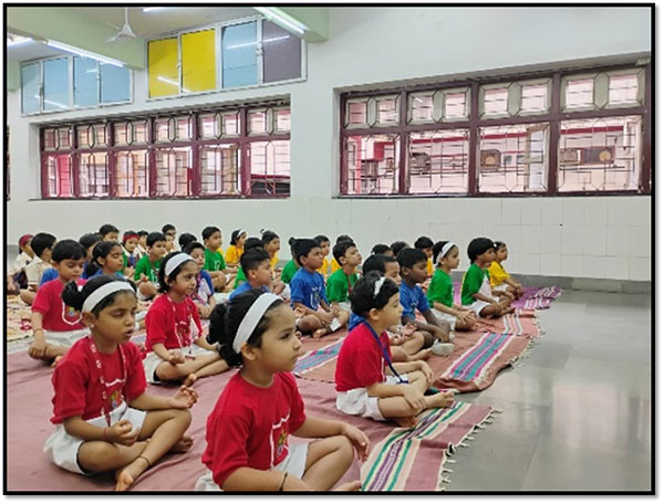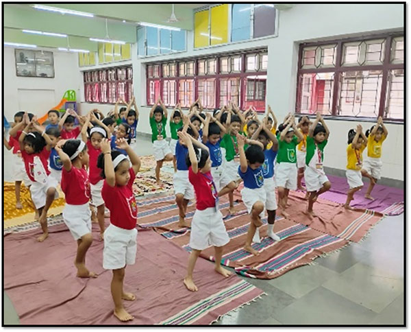 On the occasion of the International Yoga Day, the PE Team planned activities for half an hour for each class from Std I - X.