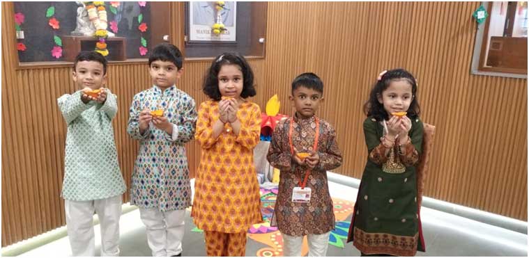 The children looked lovely in their traditional attire all set to enjoy themselves. Teachers decorated the classrooms, narrated stories on the reason for celebrating Diwali and even educated children about the ill-effects of crackers on the environment, human beings, birds, and animals. Children took an oath and promised that they will celebrate Diwali in a safe and an eco-friendly way.
