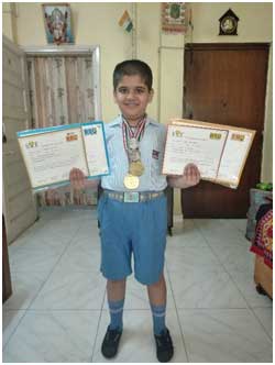 Satvik Godbole of Std I secured 11th positionas International Rank and Zonal Rank in “International Mathematics Olympiad” organized by SOF.