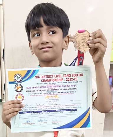 Advik Sameer Panchal of Sr. KG. won a Gold Medal in the 9th District Level Tang Soo Do Championship 2022-23 in the Under 7 Category White Belt Weight - 19kgs.