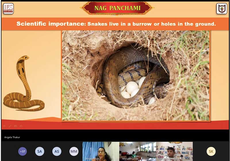 The message “If you love animals, in return you will get lots of love and blessings from them” was conveyed to the students through this virtual Nag Panchami Celebration.