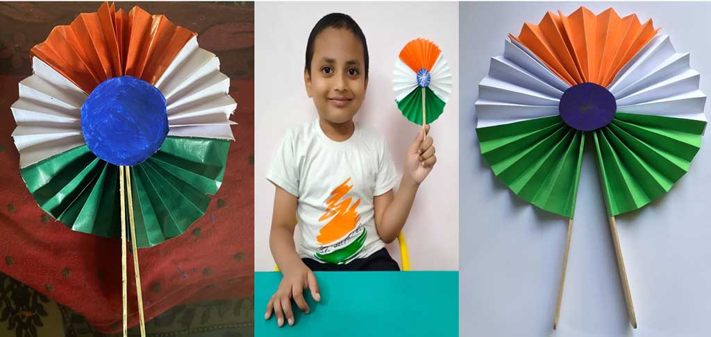 To keep the patriotic feeling ongoing, our students sung a patriotic song with full emotion and enthusiasm. The song was followed by a vibrant dance by our tiny tots. Students also participated in different activities. Nursery students enjoyed Palm Painting of the National Animal, Bird, Flower and Flag. Jr KG students prepared Tri-colour Flag using ice-cream sticks and Sr.KG students prepared Tri-colour paper fan. Students who participated in these activities were rewarded with participation certificates.