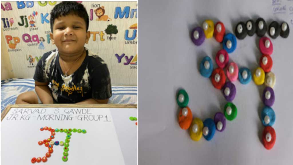 *जूनियर केजी (Jr.KG) - क्ले से अक्षर 'अ' बनाना तथा उसकी सजावट। (Clay Moulding Competition)