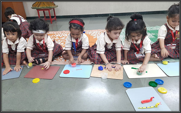 The Project corner was decorated with images of snakes and traditional Indian Motifs. Teacher narrated the mythological significance of Nag Panchami as well as the importance of respecting and protecting nature. Students participated in craft activity and clay moulding activity where they made snake shaped crafts using clay, paper and other materials.