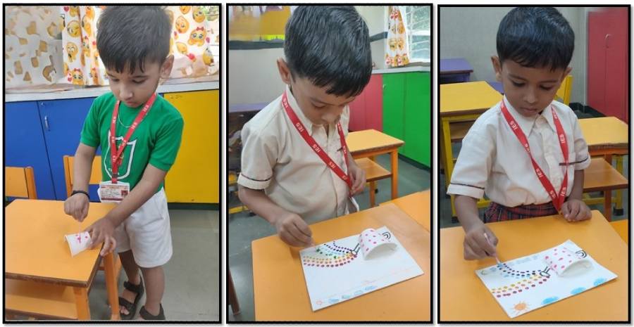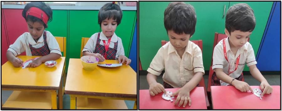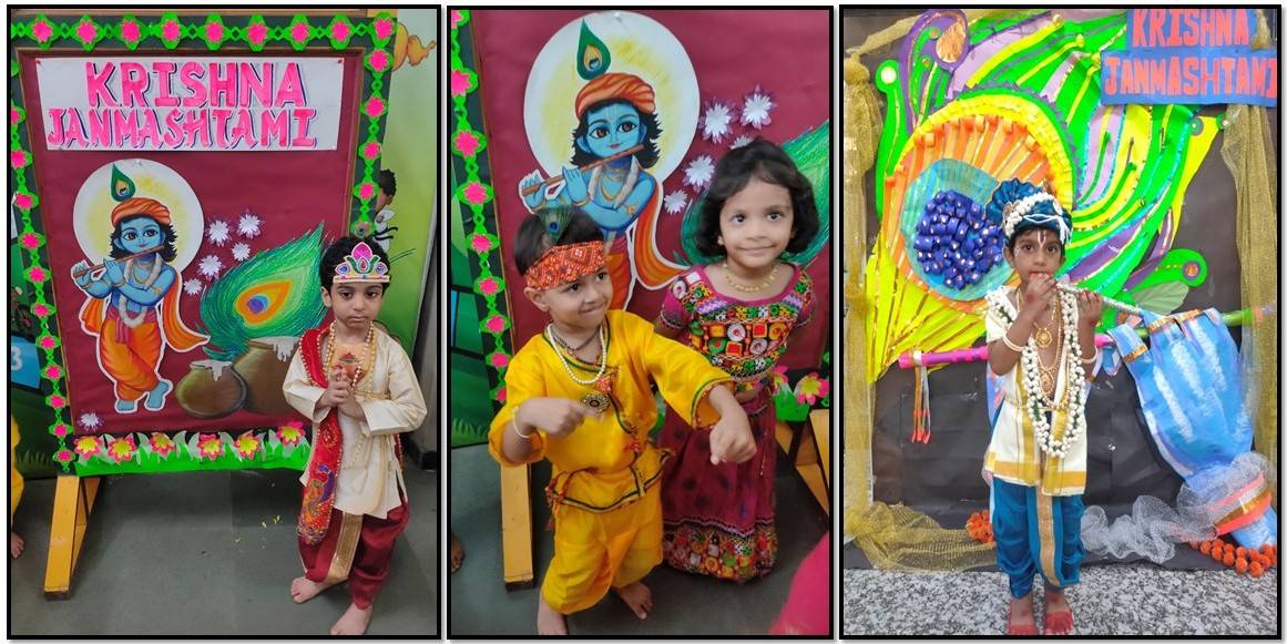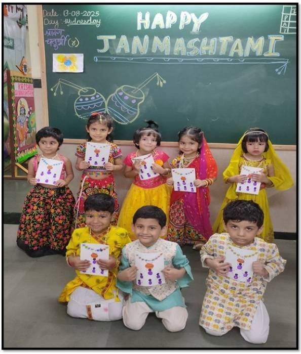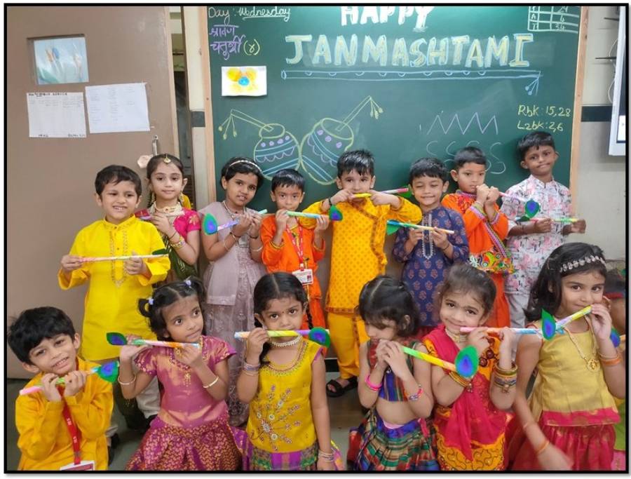Sr. KG: Making colourful flutesThe celebrations were filled with laughter, devotion, and enthusiasm, leaving the tiny tots with fond memories of Janmashtami and the values of love, unity, and faith it represents.