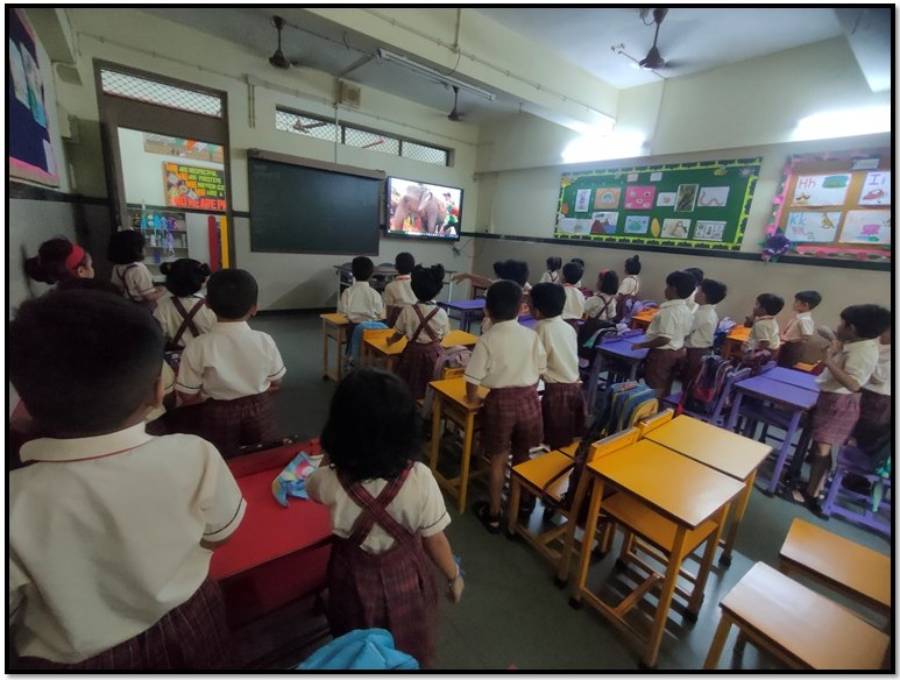 Teachers of Nursery, Jr.KG, and Sr.KG classes engaged the children with heart-warming videos of the legendary bond between Lord Krishna and Sudama, along with songs that celebrated friendship. Through stories, and discussions, students learnt that a true friend stands by us in difficult times, shares our happiness, corrects our mistakes, and loves us just the way we are.